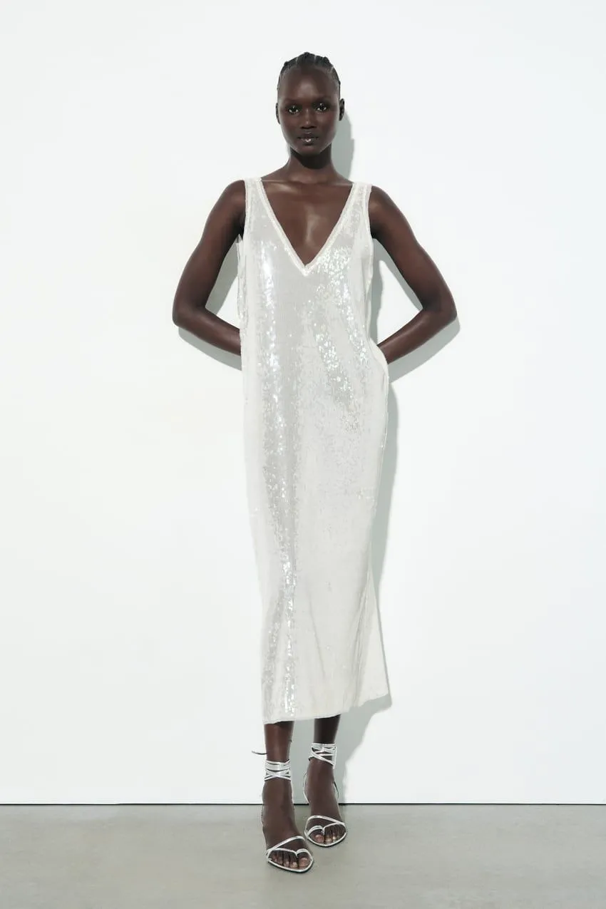 - Vestido de línea A de "Zara" que favorece diversas siluetas.